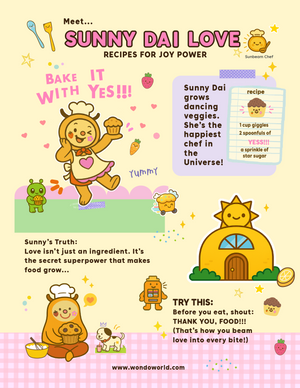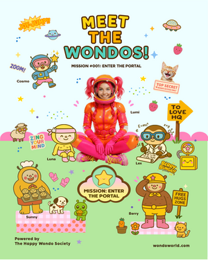 Inside, you’ll meet the five legendary Wondos—each one a walking burst of light, laughter, and love-energy: