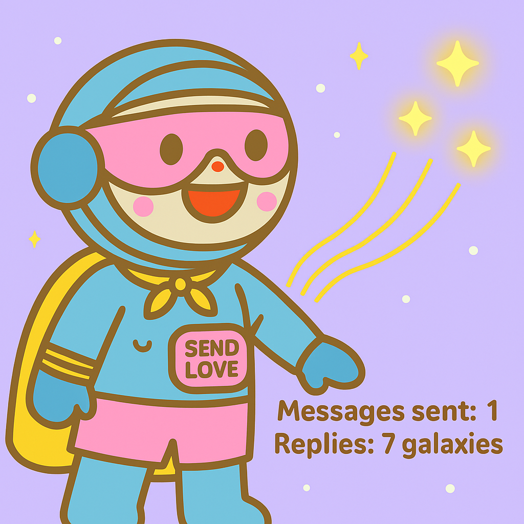 Here, questions drift in Wonder Pods, socks grow on star-trees, and the map only shows places your heart is ready to visit. Cosmo zooms down the Vibe Slide Galaxy Track when he needs fast ideas, then chills on the Thinking Rock Ring to dream up new ones. At the Alien High-Five Spot, unexpected visitors drop off gifts (like glowing grapes or zero-gravity hugs).